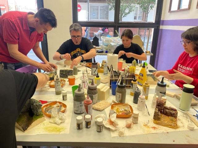 No necesitas experiencia previa. Este taller está diseñado para principiantes, pero incluso los que tengan conocimientos de maquetismo podrán compartir y practicar técnicas. Trabajaremos con materiales fáciles de encontrar y económicos, como vendas de yeso, esponjas, porexpán y aserrín teñido.